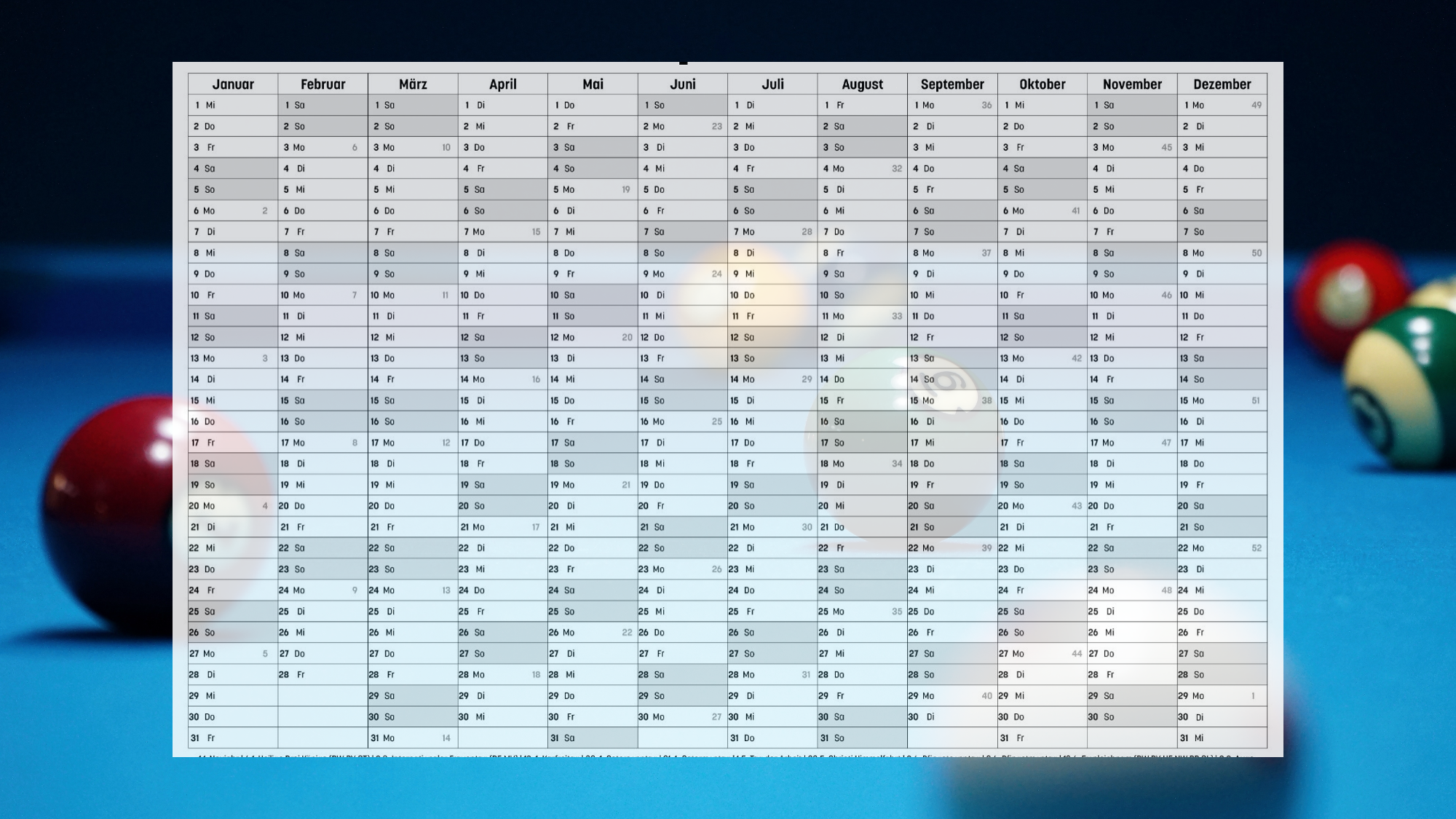 Der Kalender wird fortlaufend gepflegt. Aktuelle รnderungen oder Ergรคnzungen werden hier verรถffentlicht.